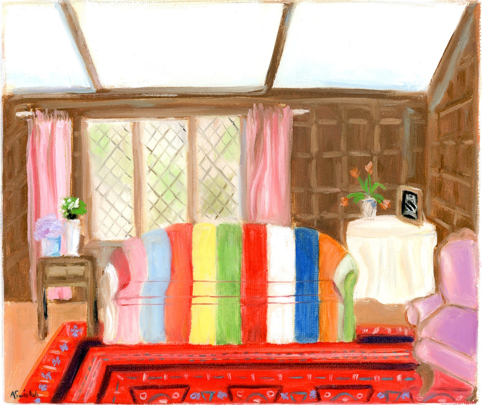 Tudor Cottage: Striped Sofa IV is part of an ongoing collection of interior oil paintings.
